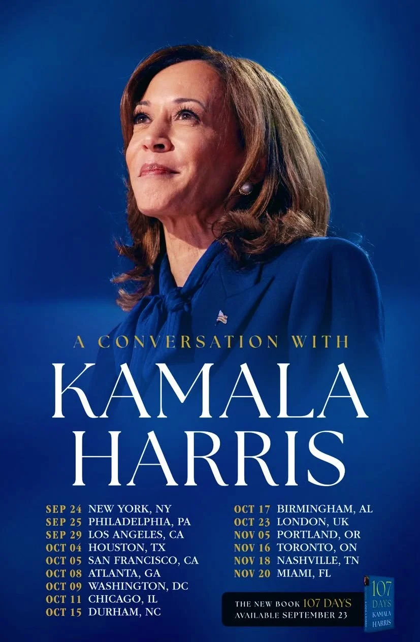 Kamala Harris Announces Book Tour Data for “107 Days”